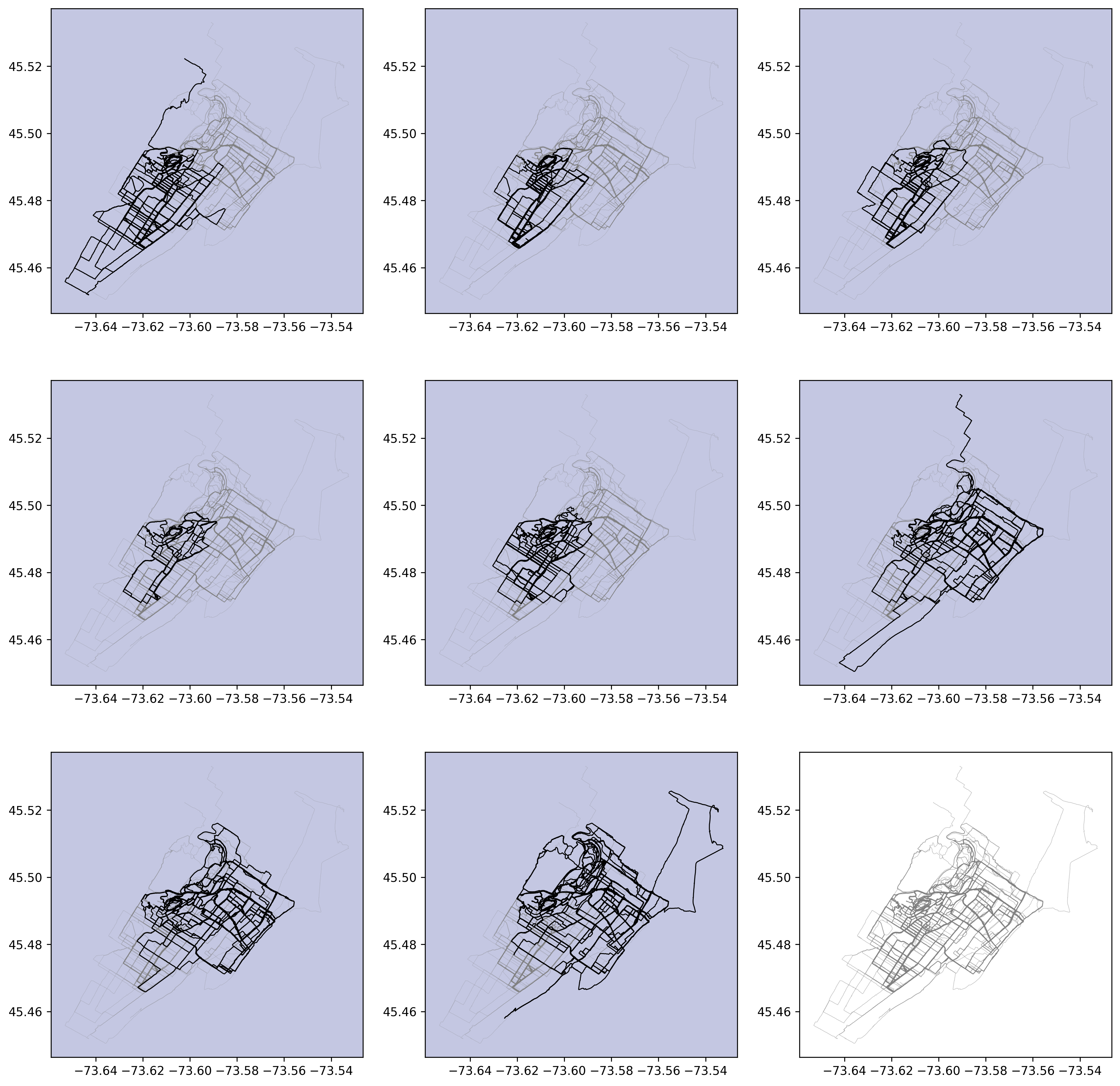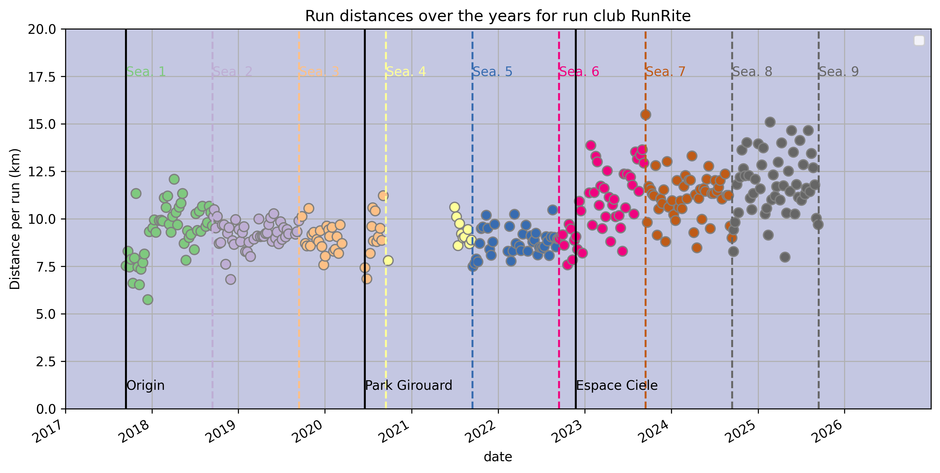 I’m collecting data for all runs, so each Thursday I’m archiving the path of the week (a .gpx file). It changes each week except that we start and come back from and to the same place. And for the last 3 to 4 years we started from Espace Ciele.